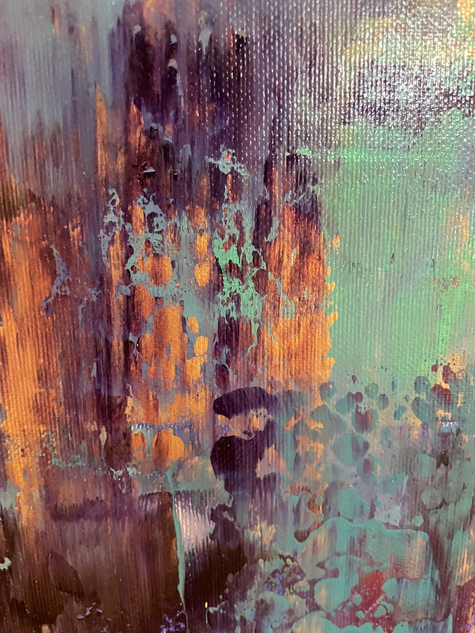 As you can see, I like to make Blue paintings with a bit of Gold. With this painting there is no background story. It is whatever you see in it. Take a moment and let your imagination lead the way.