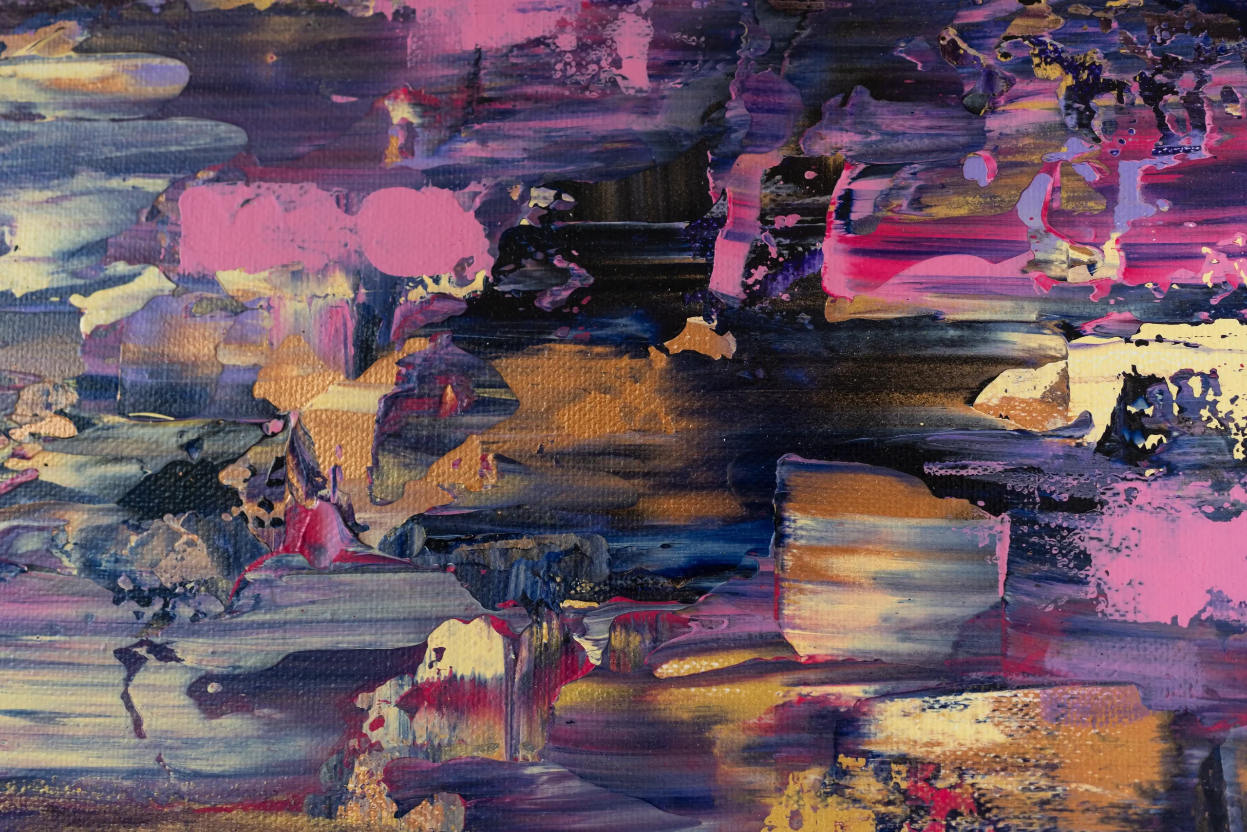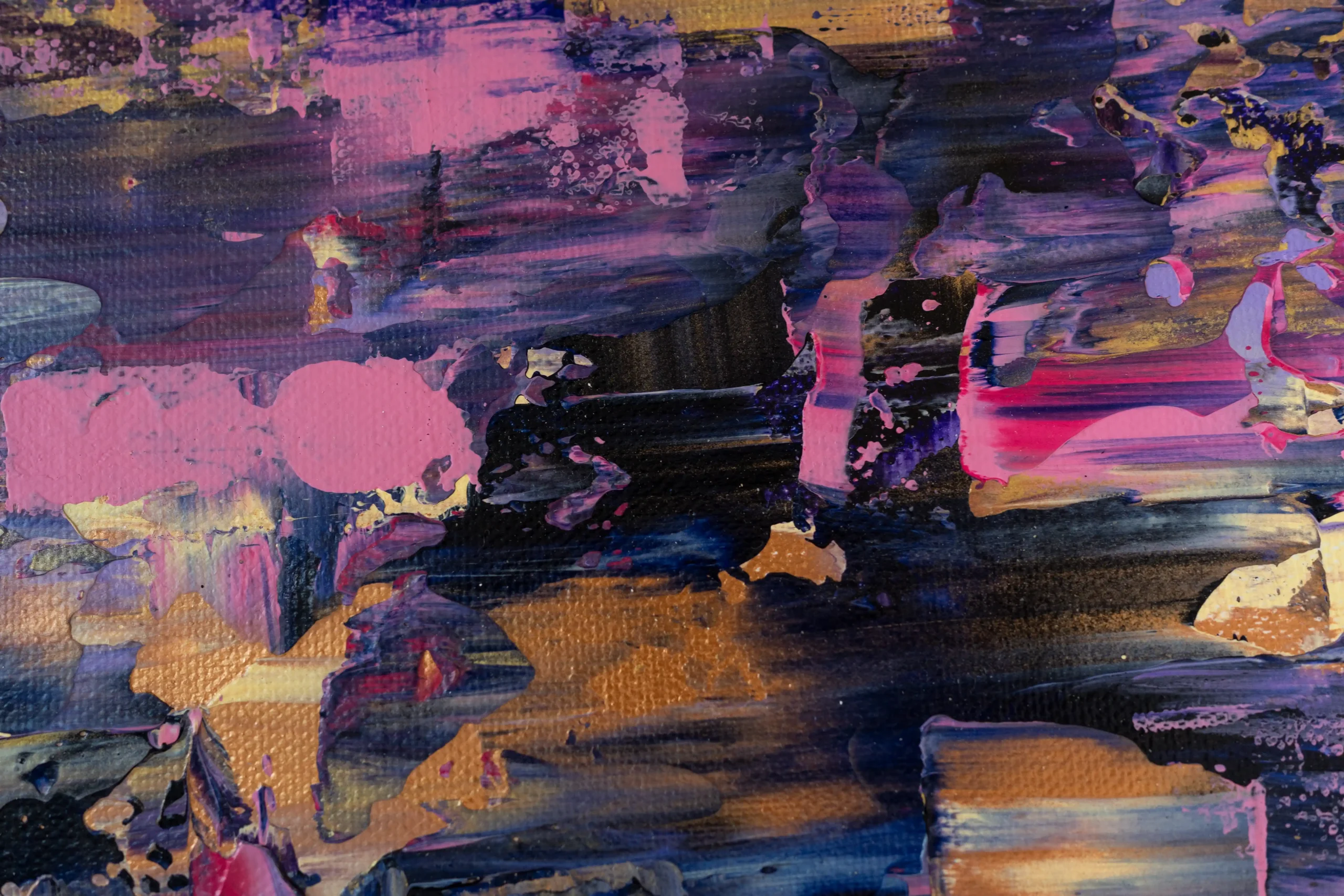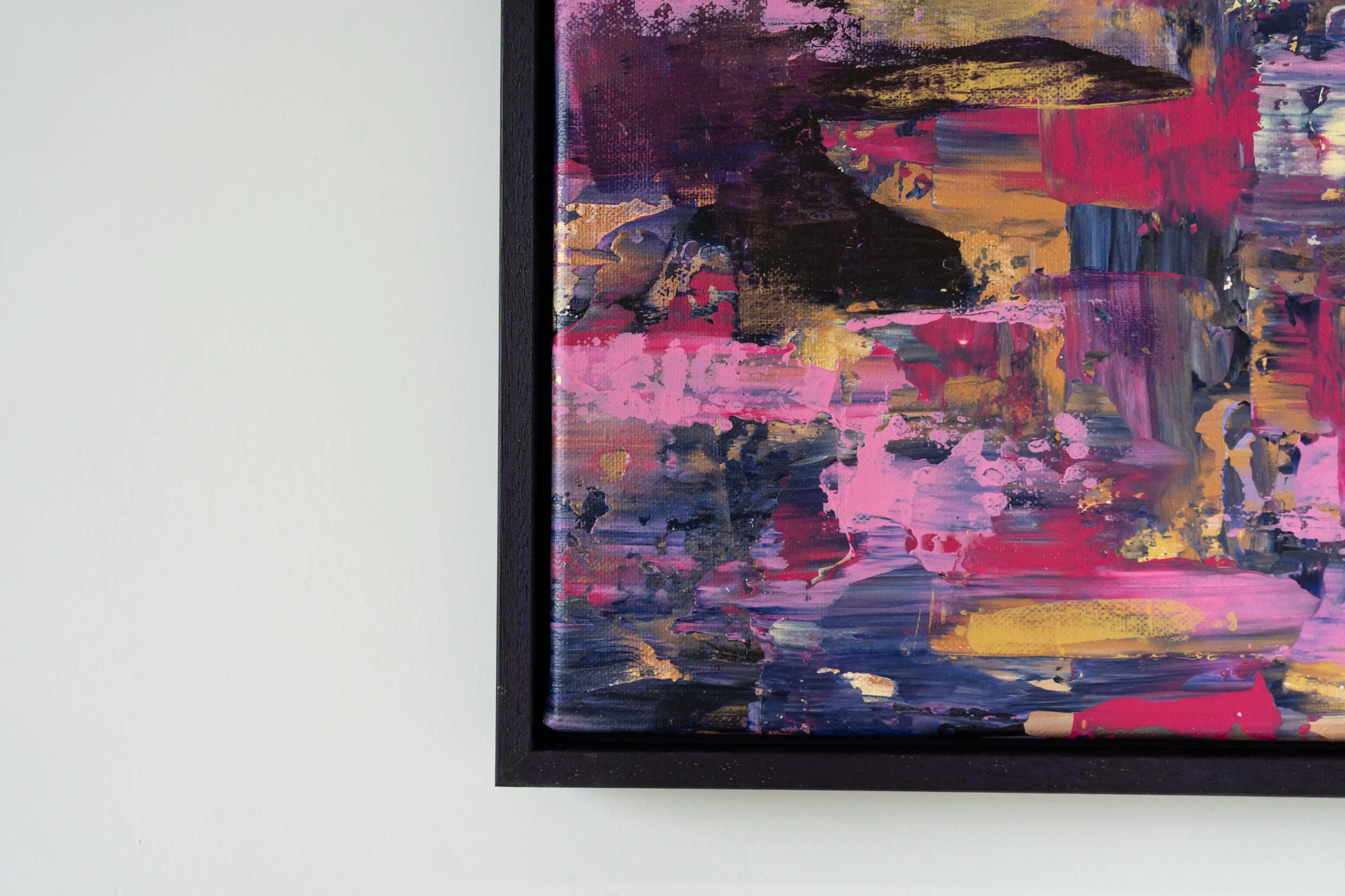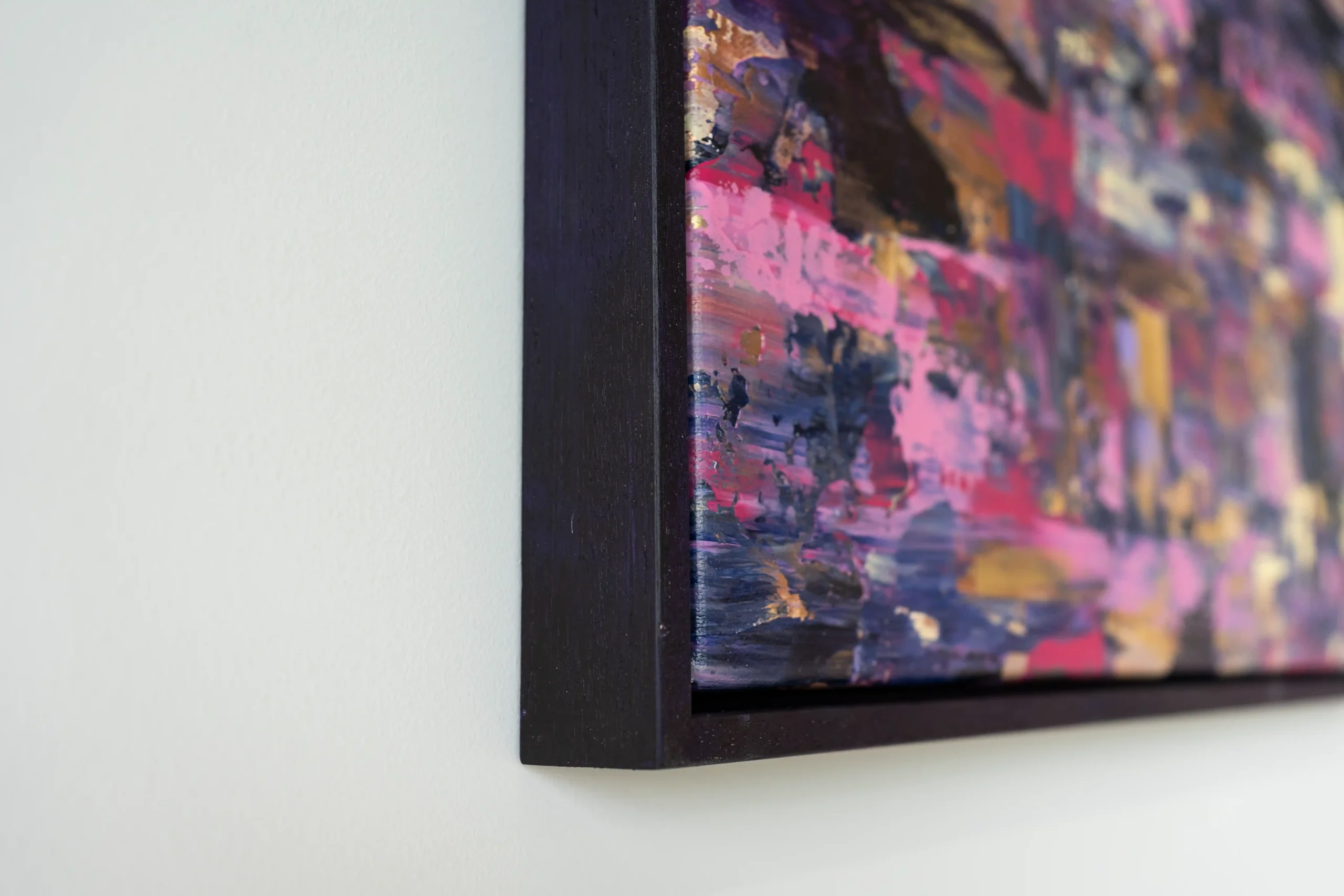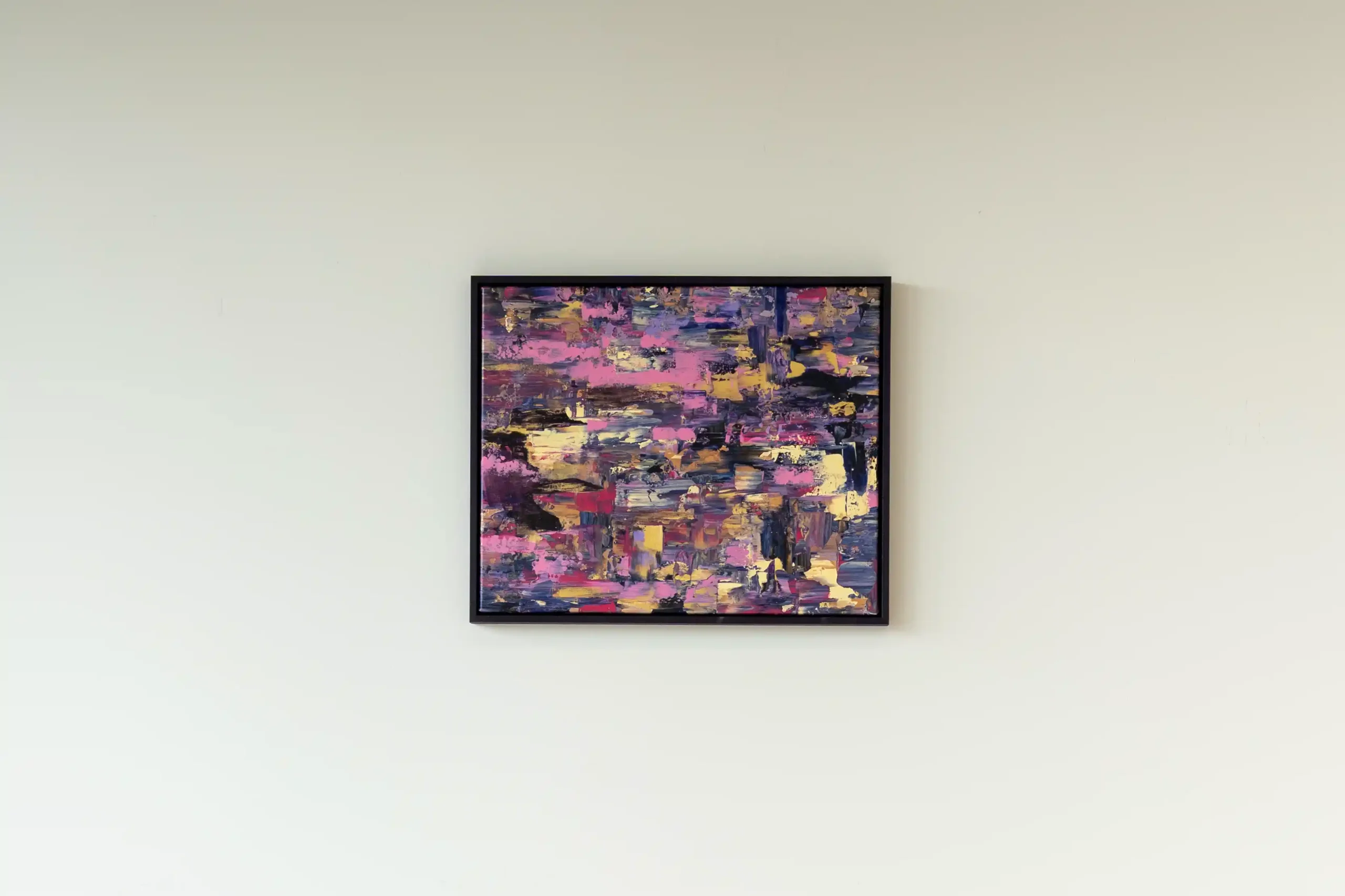 A Purple, golden, lilac artwork. Made with a view of Mount Agung in Kintamani Bali. A really special area with the best view I ever experienced. Made in Bali, reframed in The Netherlands.