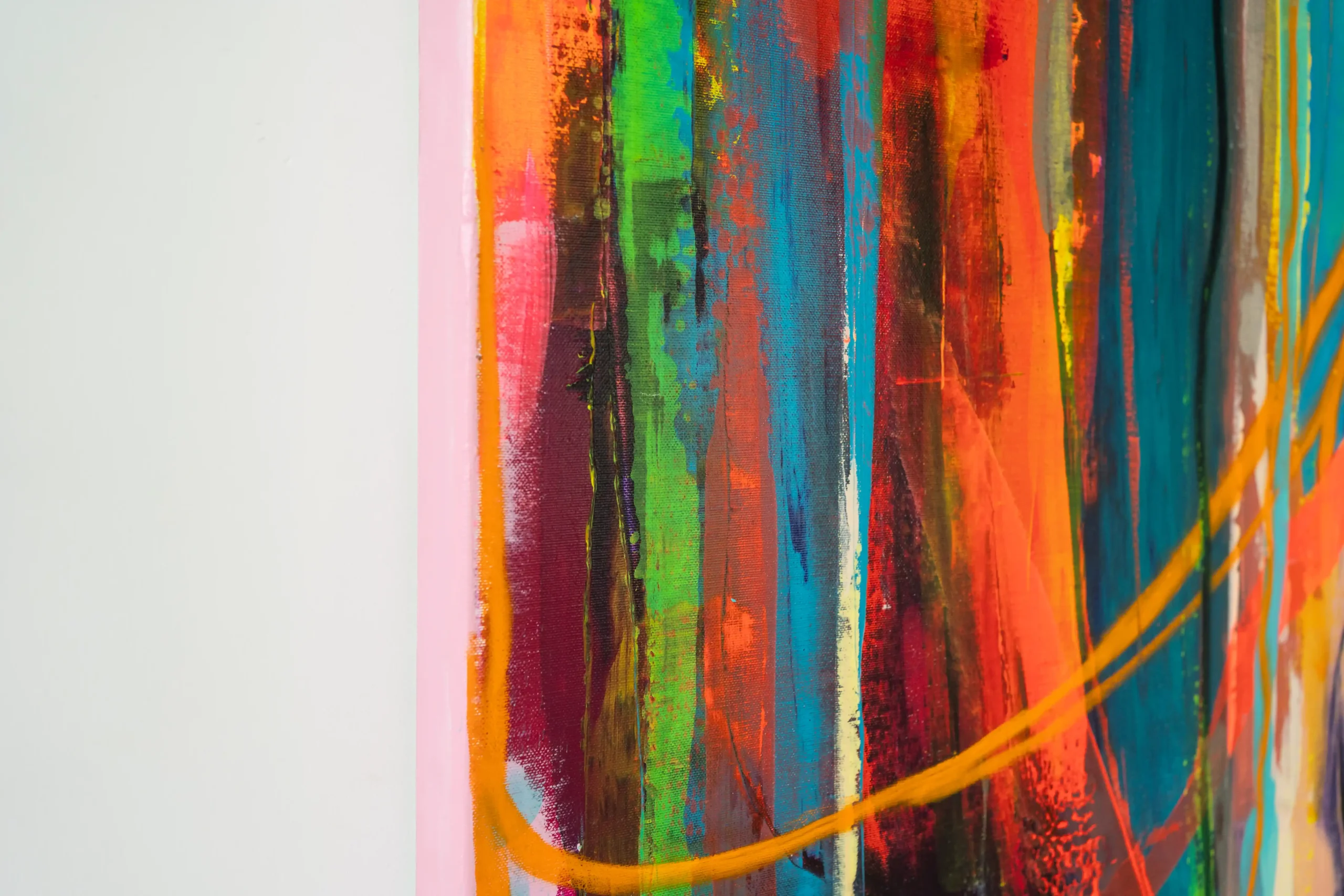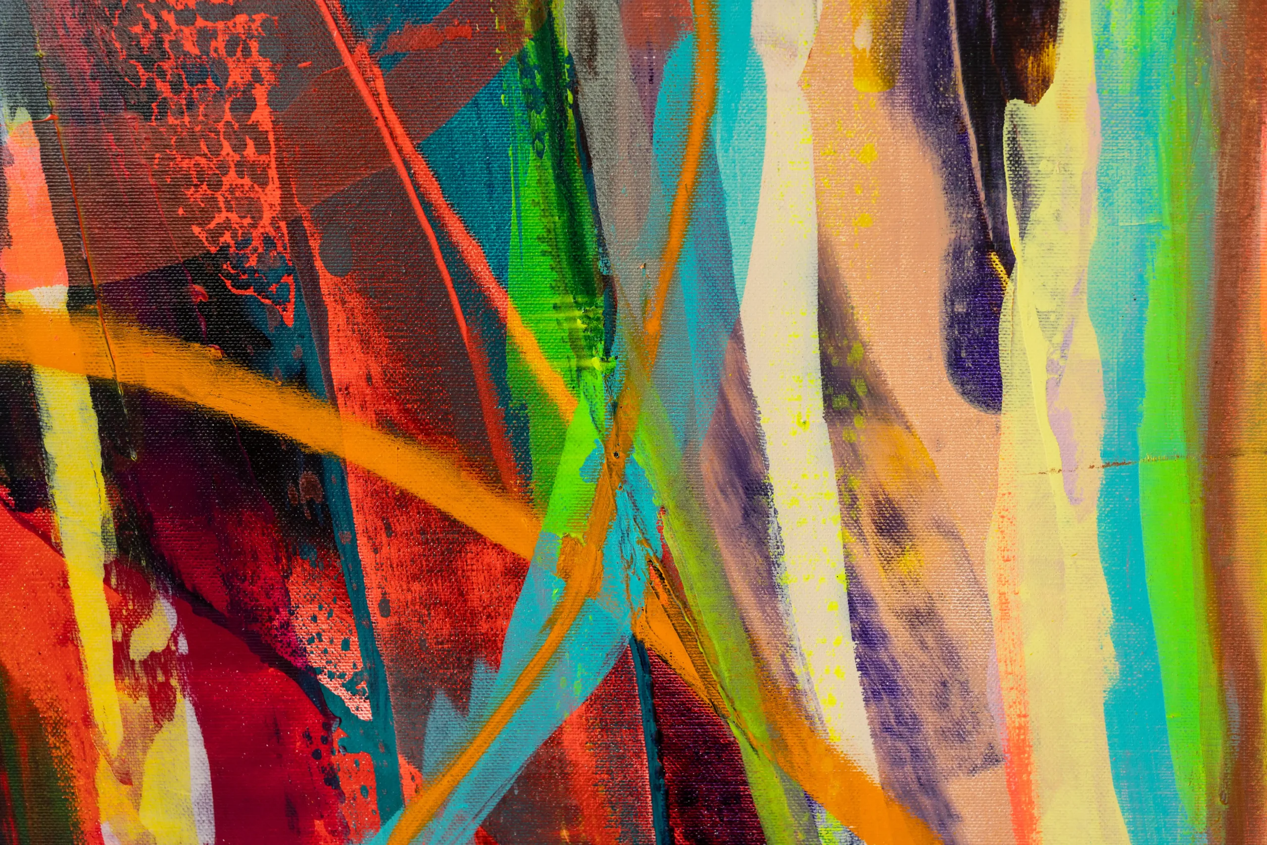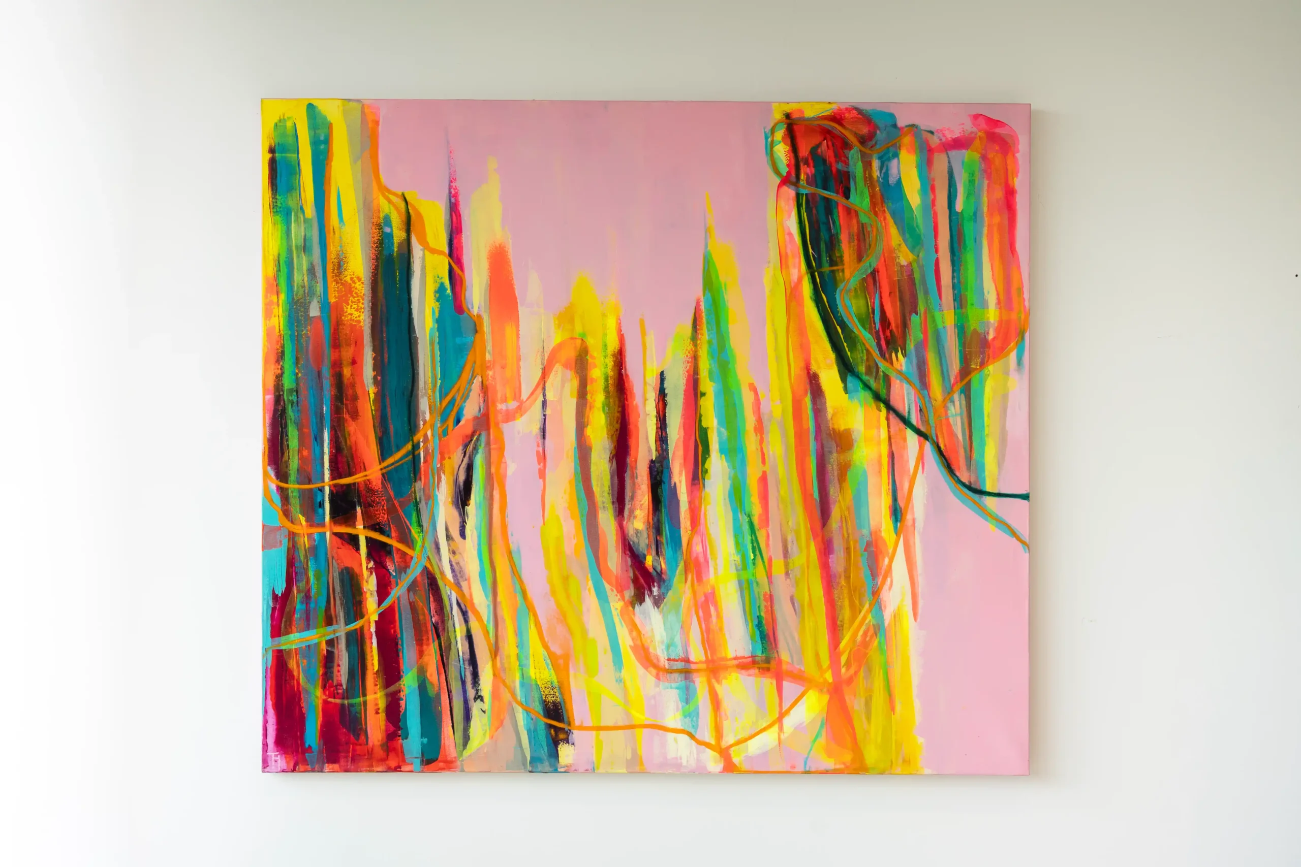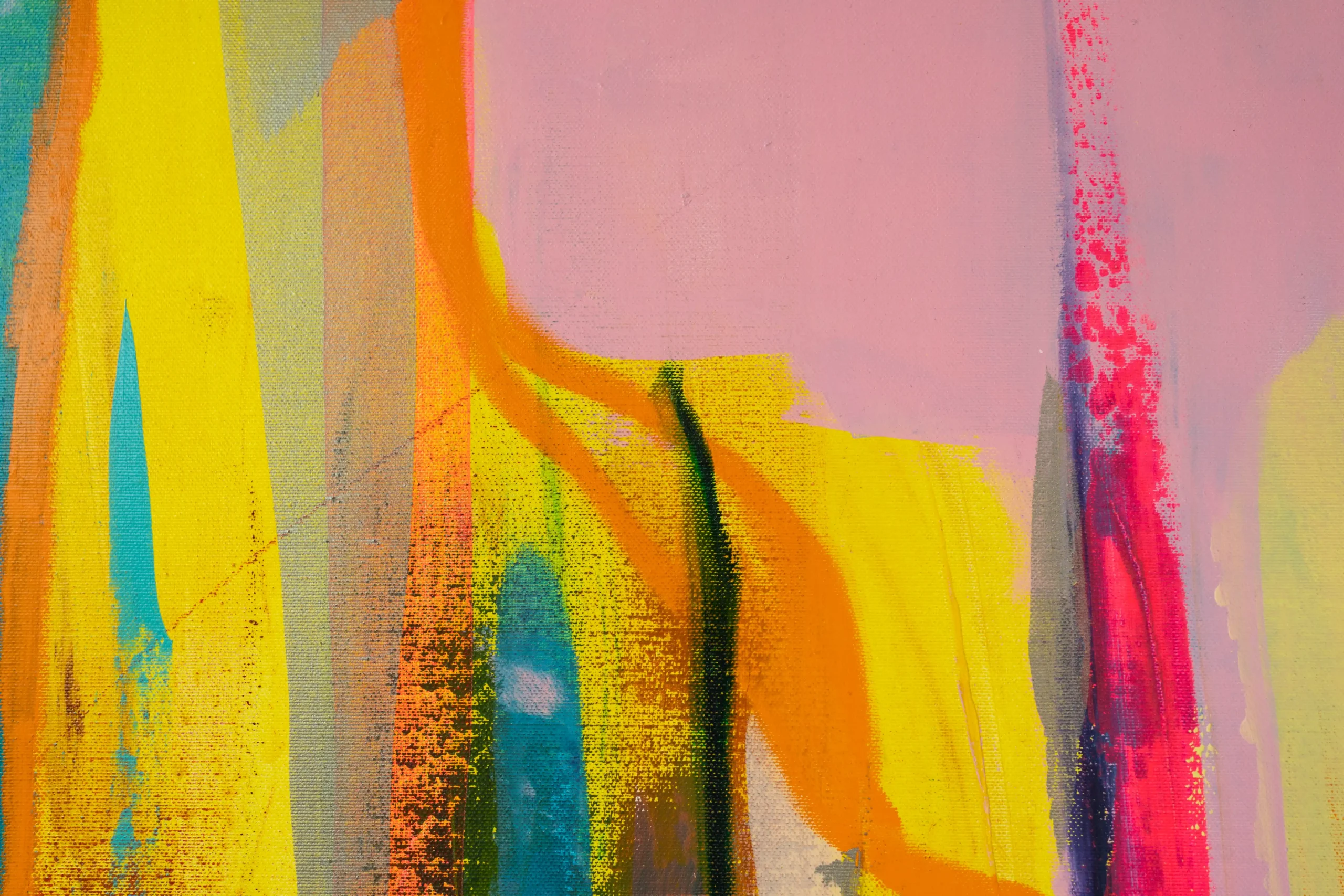 Big paintings like this don’t have a plan or a mission. It just happens when I stop thinking and let my hands do what they want. It feels like an experiment when you put with 25 fluorescent markers in a microwave, just to see what happens.