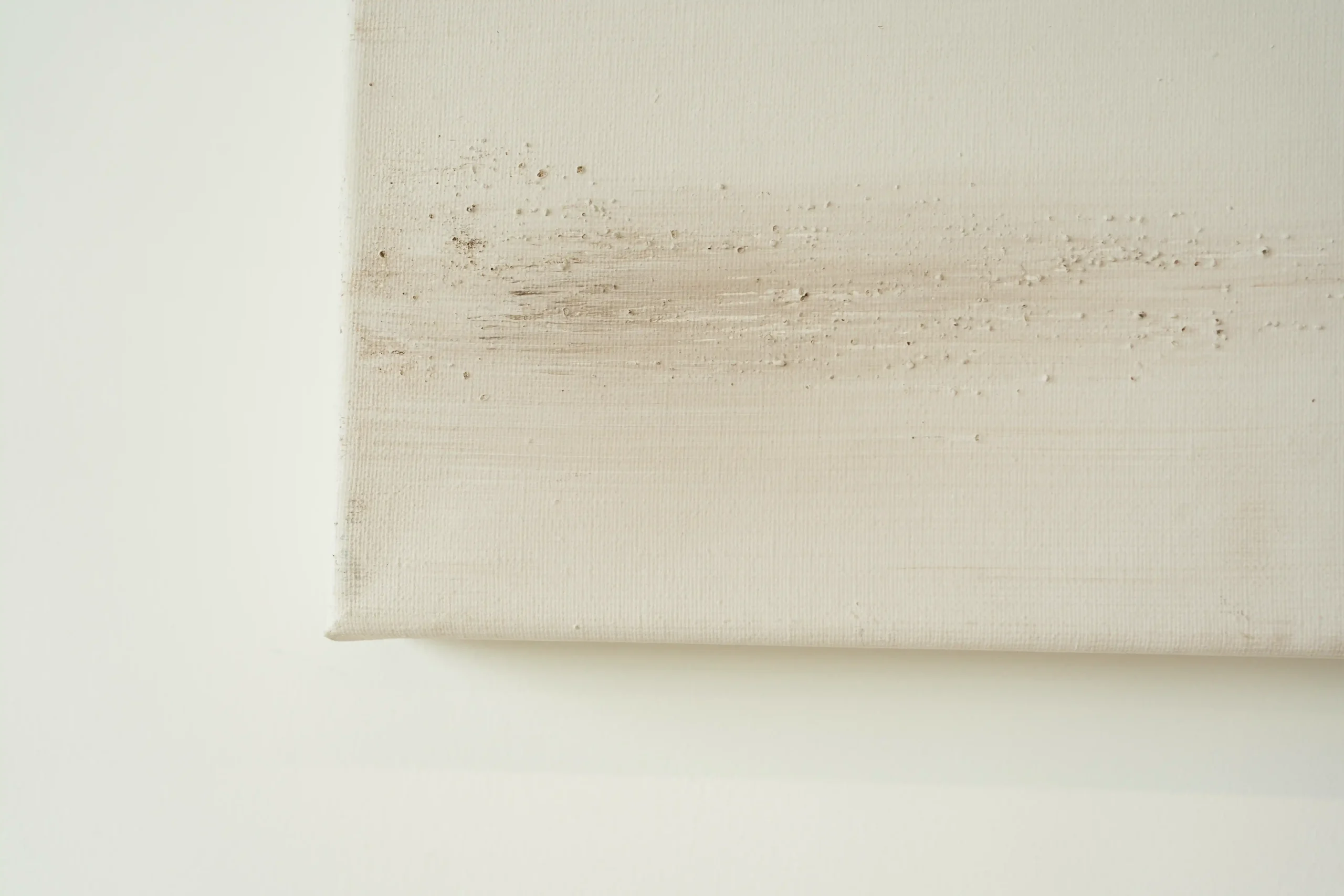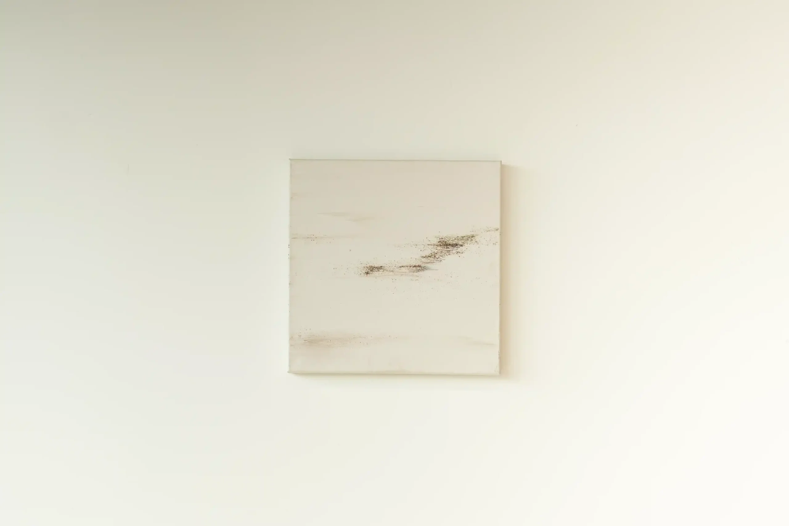 Soft white sand from the Dutch dunes, coconut grinds and coffee on whites with a green base. A calming artwork with matte finish. DUNE is part of a series inspired by the Dutch seaside.