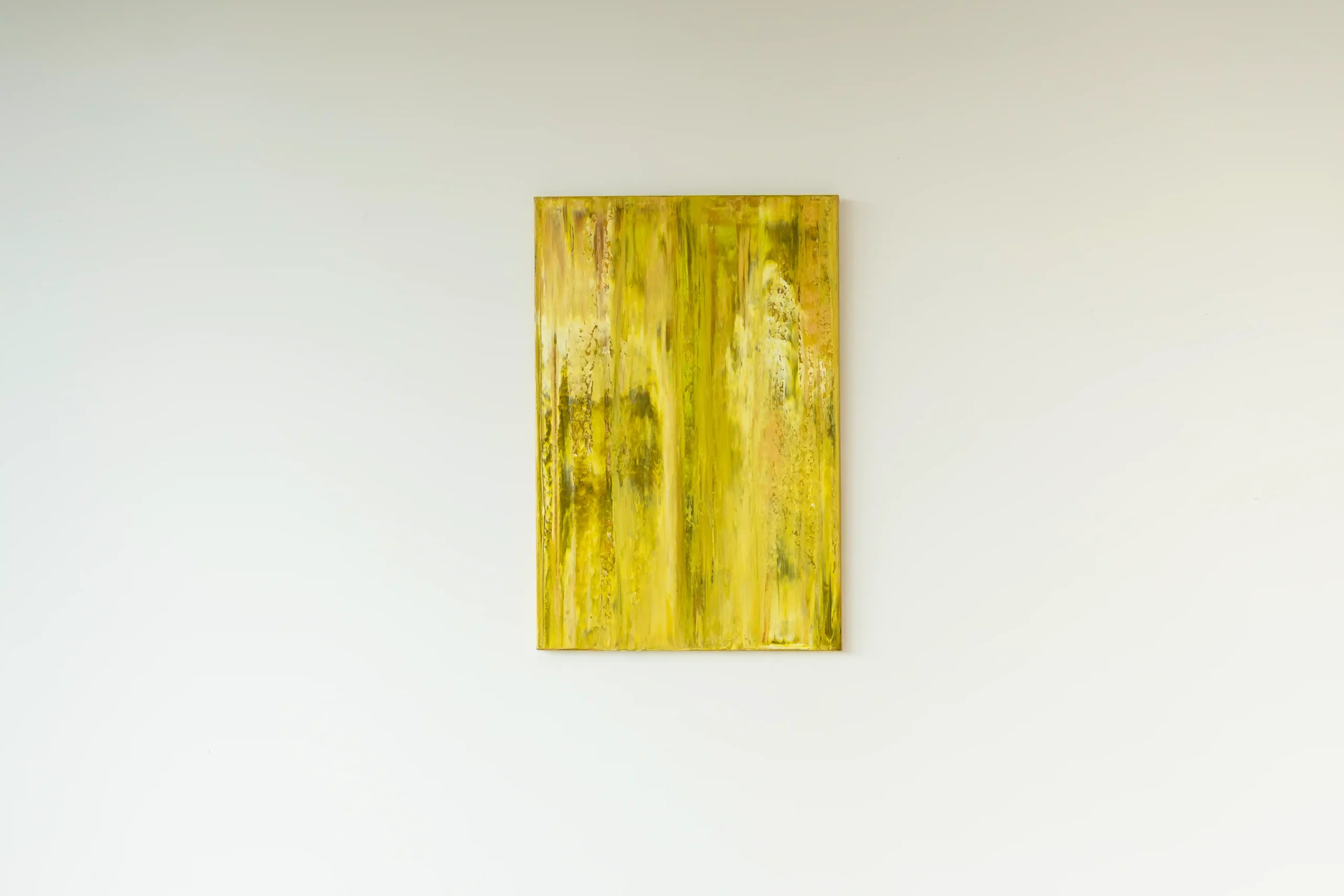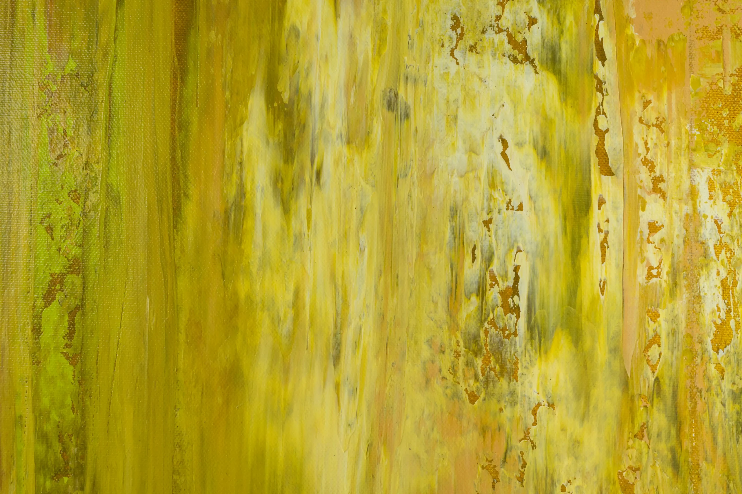 This painting, “Mellow Yellow,” uses soft yellow, golden and oker colors to create a calm and peaceful feeling. The gentle but bold shades and simple design make it a relaxing piece that can brighten any room. Simple but interesting.